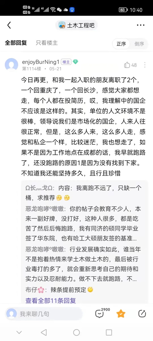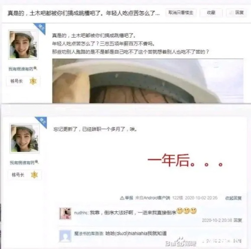 土木工程贴吧从不抱怨自己的行业不行,只谈提桶跑路。