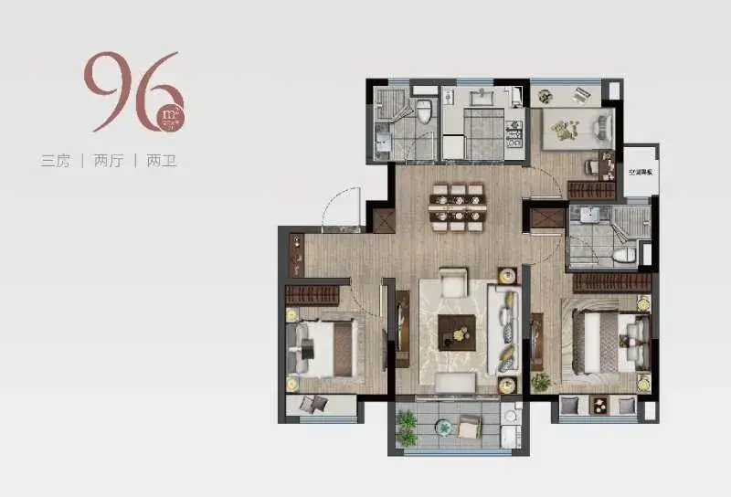 最新动态:栖樾府目前已公开售楼处和96㎡、135㎡样板间,项目预计8月首开。